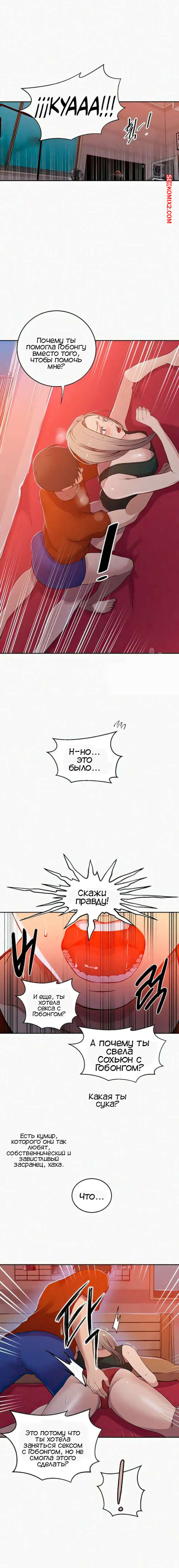 Порно комикс Тайное обучение. Часть 191. Secret Class Даехо вернулся домой в ярости от того, что Сохьюн занялась сексом с Гобонгом. Он раздел Мию и стал ласкать ее пизденку, после чего хорошенько выебал ее.