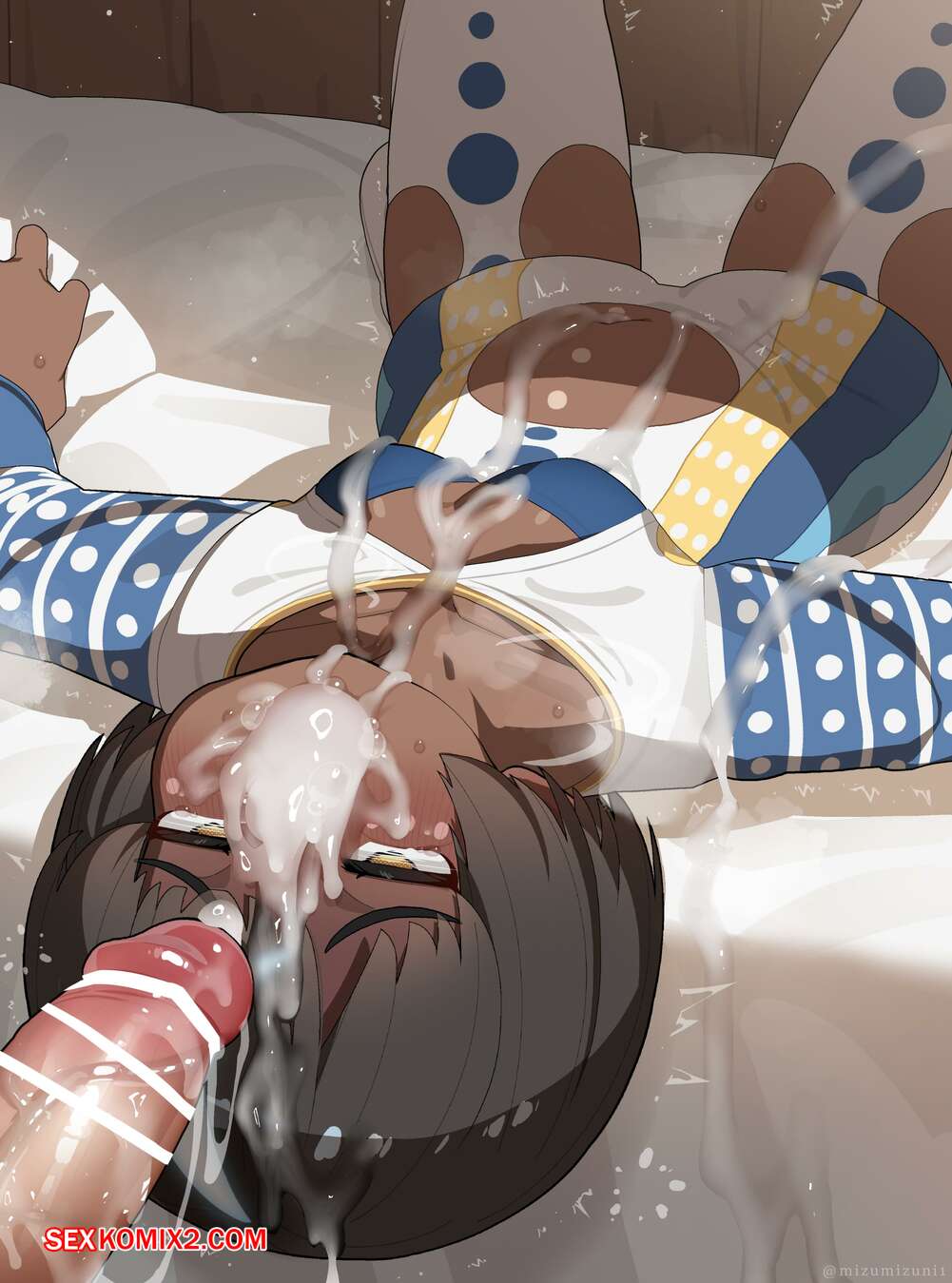 Порно комикс Mizumizuni. Wandjina Горячая темнокожая брюнетка была очень возбуждена и решила повеселиться со своим дружком. Она разделась и отсосала хуй парня, после чего он кончил ей в ротик.