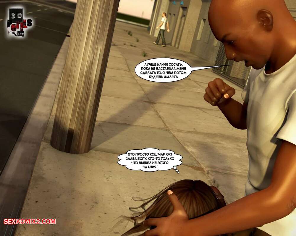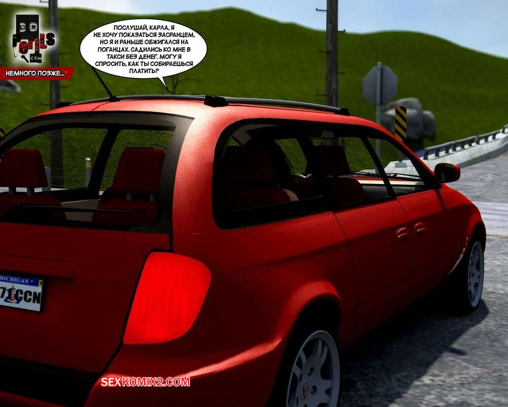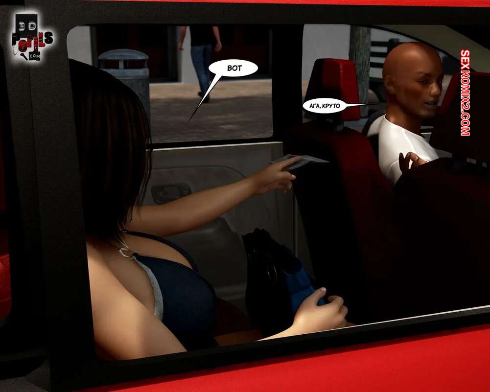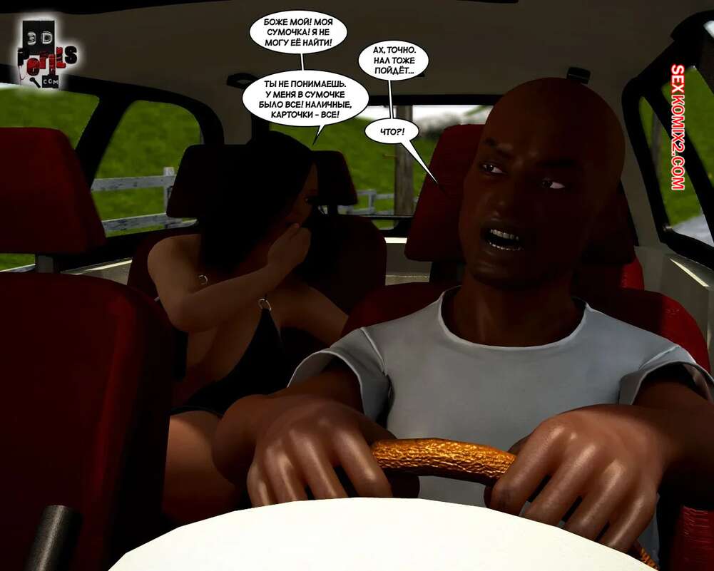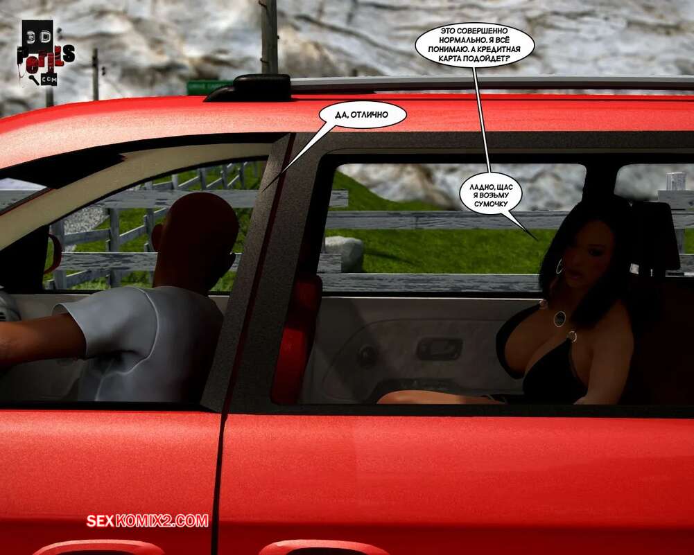 Порно комикс Похищение. Часть 1. The Abduction. 3D Perils. Горячая милфа остановила машину, чтобы ее подвез темнокожий парень. Он завез ее в уединенное место, где поставил красотку на колени и выебал ее ротик, после чего кончил на лицо.