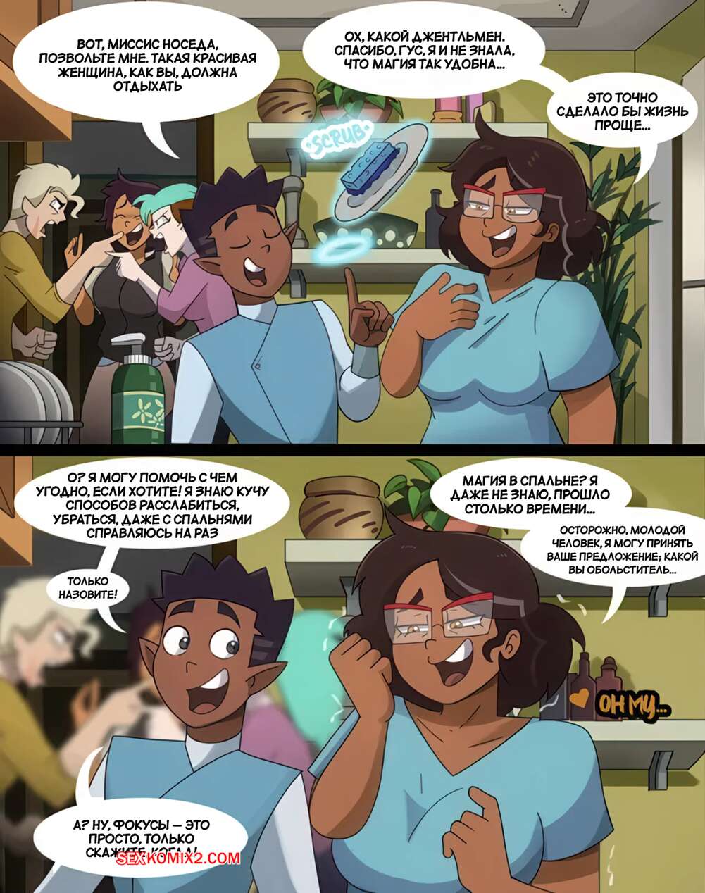 Порно комикс Дом совы. Миссис Носеда. Charming mrs. Noceda. HermitMoth. Молодой парнишка очаровал миссис Носеда своим поведением, что вызвало в ней сильное возбуждение. Зрелая красотка в одном халатике позвала паренька к себе в комнату ночью, где раздвинула ножки и дала ему себя трахнуть.