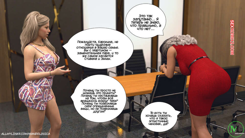 Порно комикс Все вместе. Часть 19. Teamwork. MandoLogica Каролина позвонила Маргарет и назначила с ней встречу, чтобы обсудить отношения с Мартином. Тем временем Эмма и Мия отправились в спа, чтобы подготовиться к вечернему шоу.