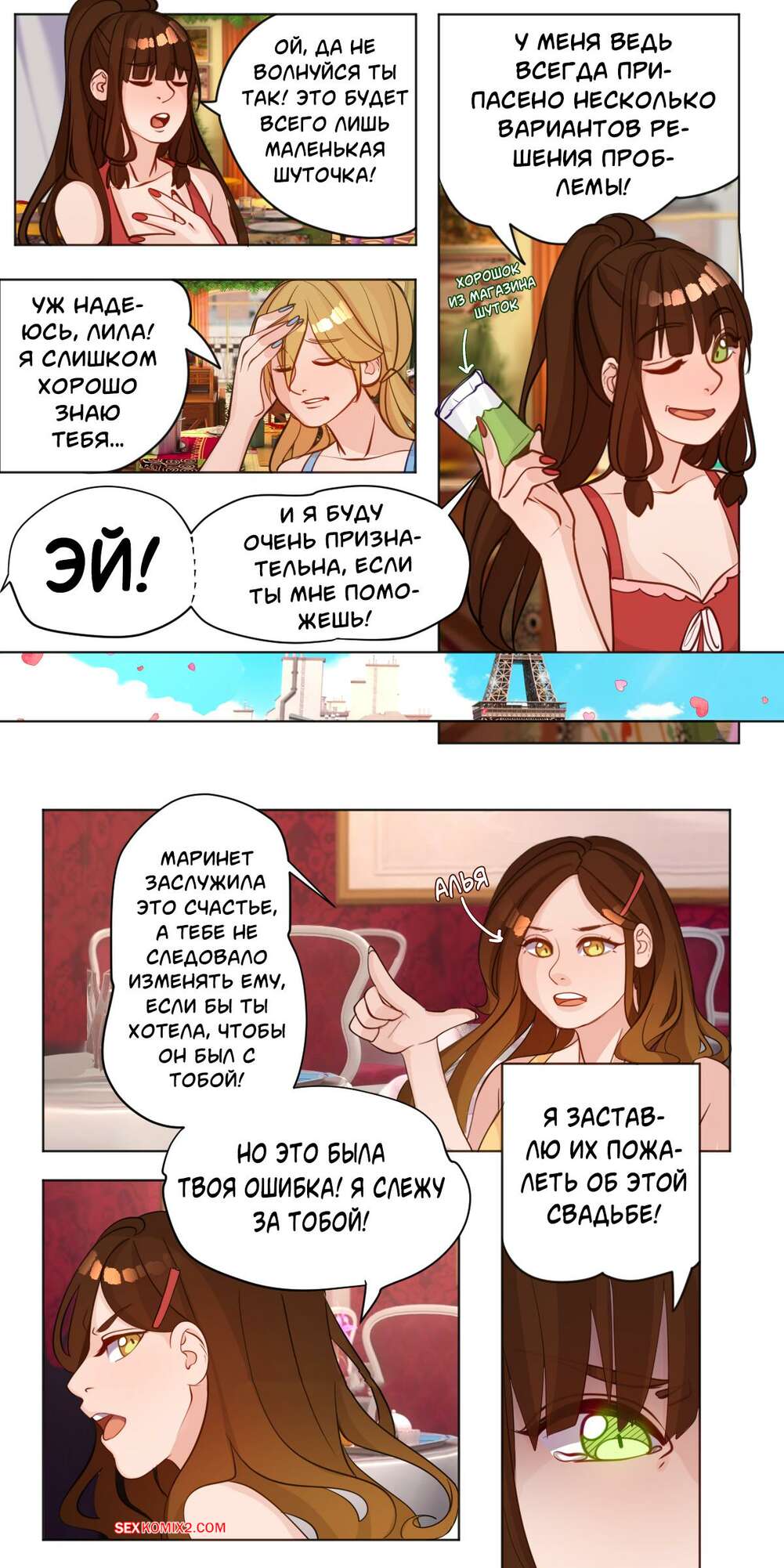 Порно комикс Miraculous Ladybug. Альтернативная Вселенная. Cogamori Красотка перебрала с алкоголем и потащила своего дружка в спальню, желая пошалить. Она раздвинула ножки и дала ему себя хорошенько выебать и заполнить ее киску спермой.