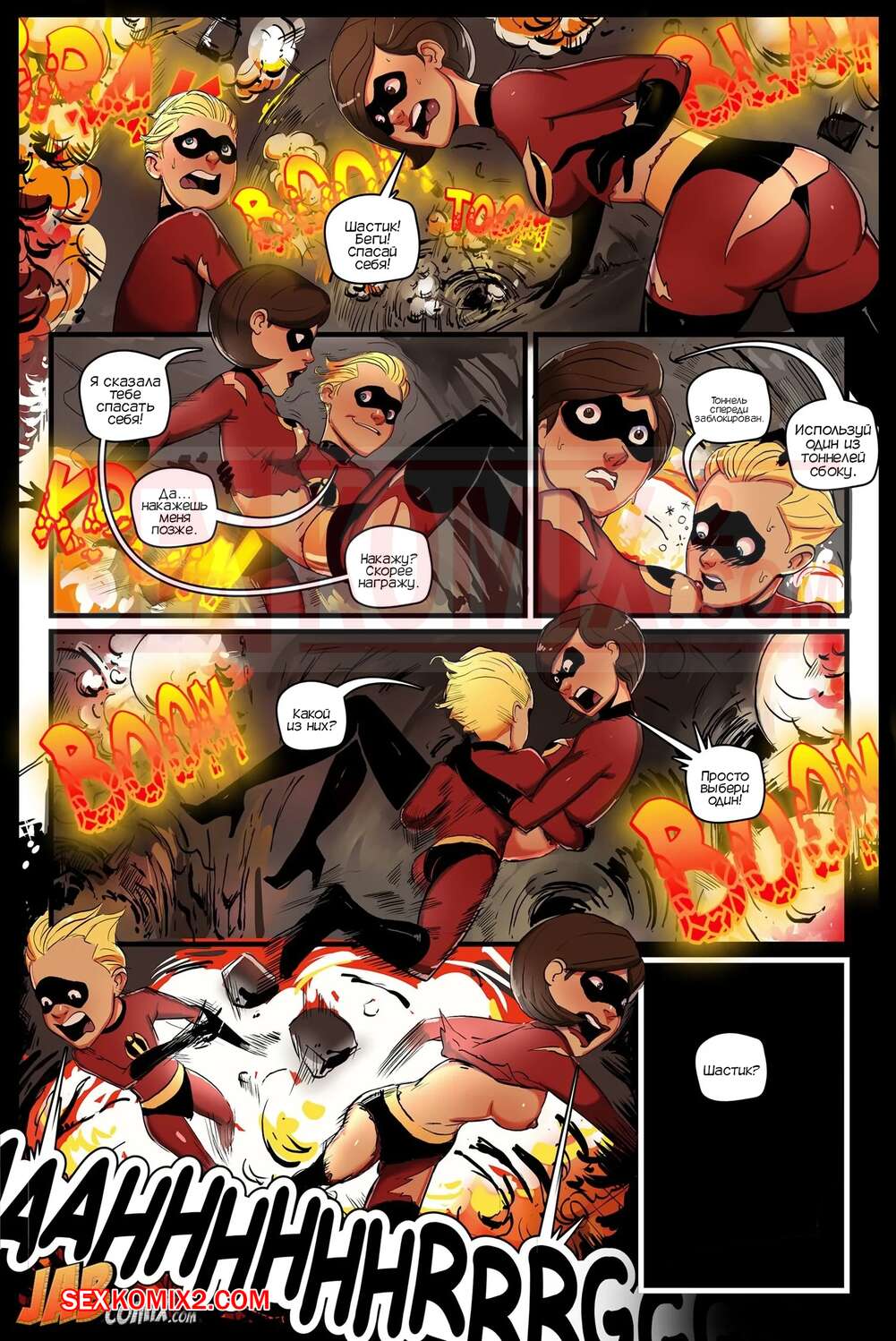 Порно комикс The Improbables. Часть 2. Суперсемейка. The Incredibles. JABComix. Шастик с мамкой попали в ловушку и находятся на грани смерти. Парень стал рассказывать мамке, как сильно она его возбуждает, так что мамаша решила воспользоваться моментом и доставить парню удоовольствие.