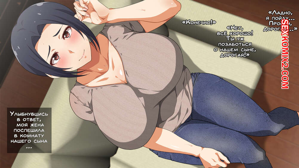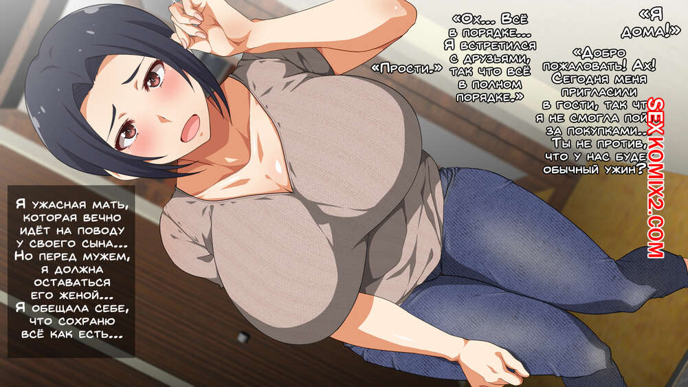 Порно комикс Эй, Ты слушаешь свою мать. Kora, Okaasan no Hanashi Kiiteru no Горячая сисястая милфа брюнетка возбудилась при виде своего сына и решила с ним повеселиться. Она разделась и стала сосать его большой хуй, после чего дала ему себя хорошенько выебать.